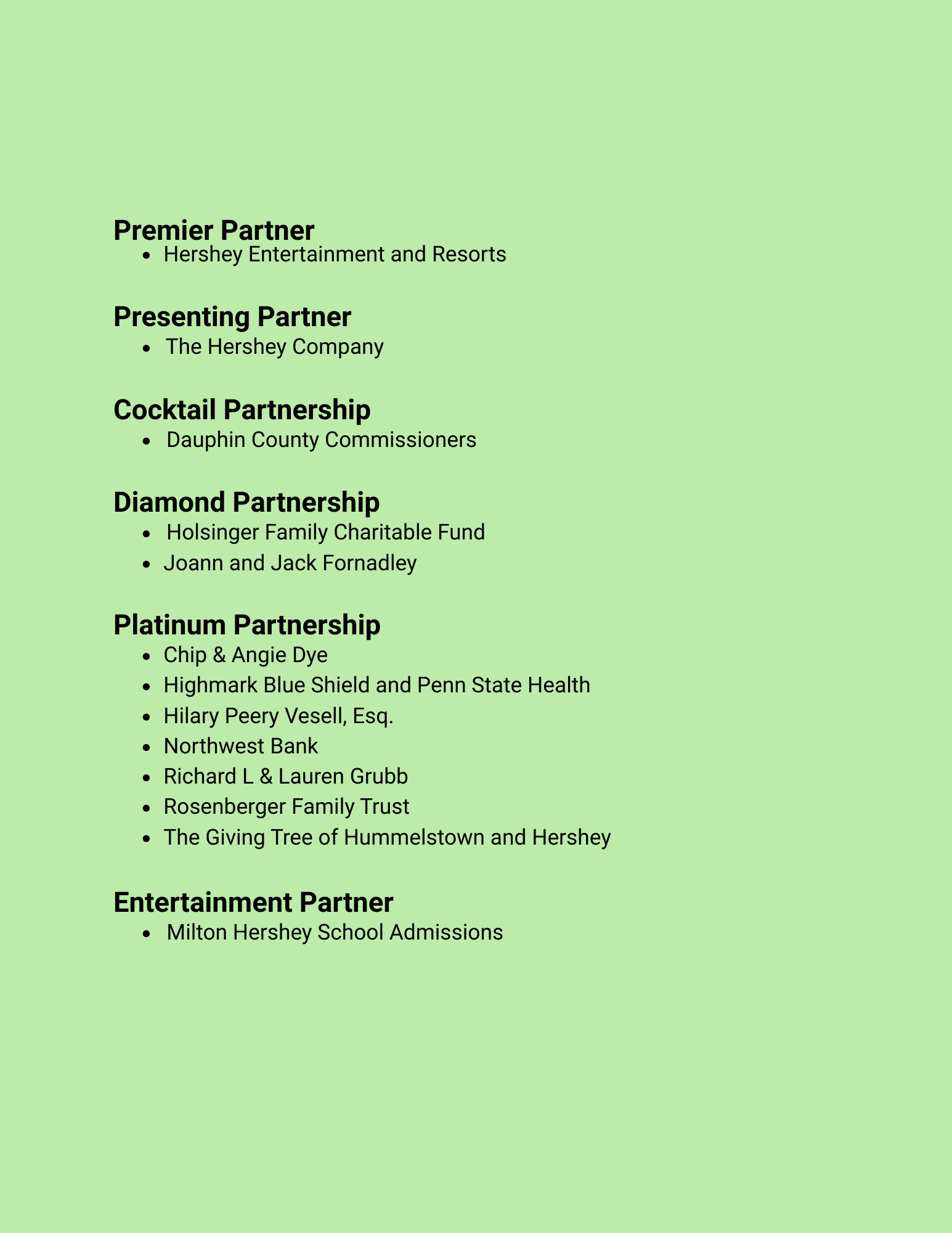 All proceeds benefit Hershey Food Bank and Community Outreach.